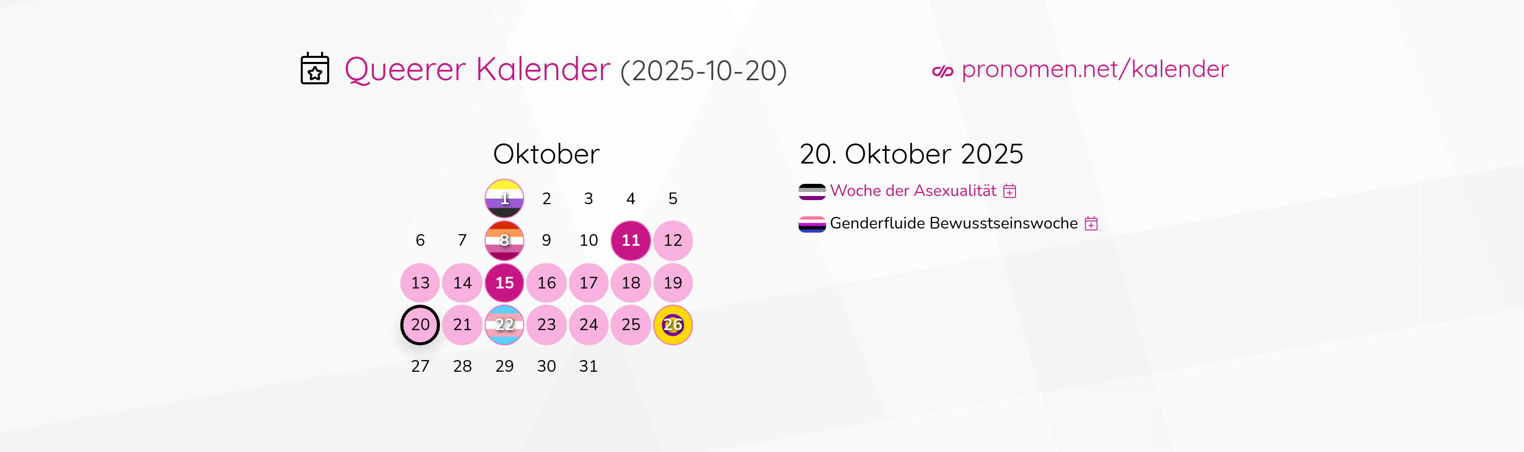 Beschreibung der Flagge: Eine rechteckige Flagge mit fünf gleichbreiten, horizontalen Streifen: Pink, Weiß, Violett, Schwarz und Blau. Genderfluide Bewusstseinswoche