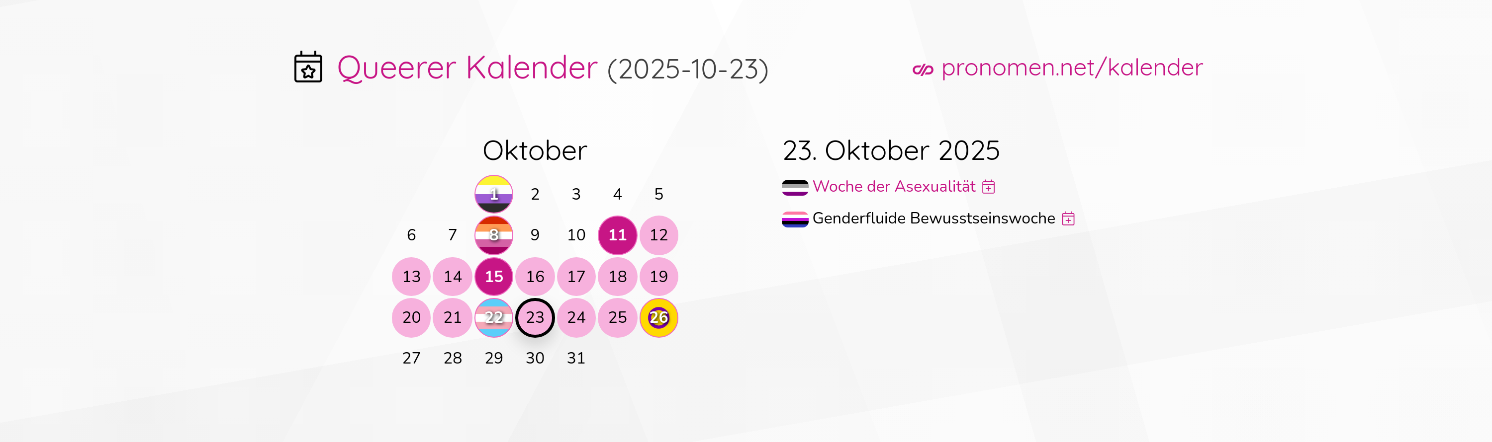 Beschreibung der Flagge: Eine rechteckige Flagge mit fünf gleichbreiten, horizontalen Streifen: Pink, Weiß, Violett, Schwarz und Blau. Genderfluide Bewusstseinswoche